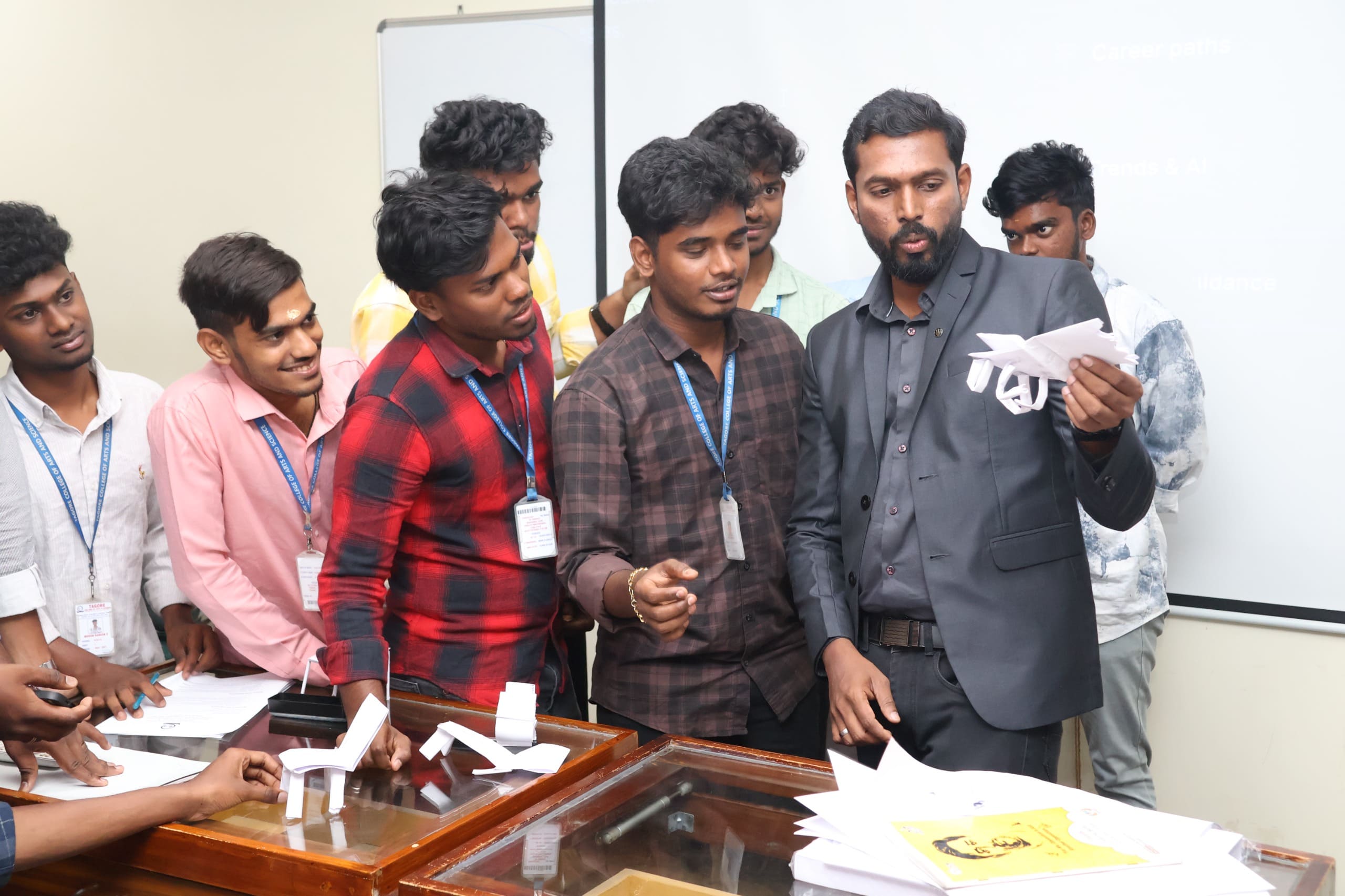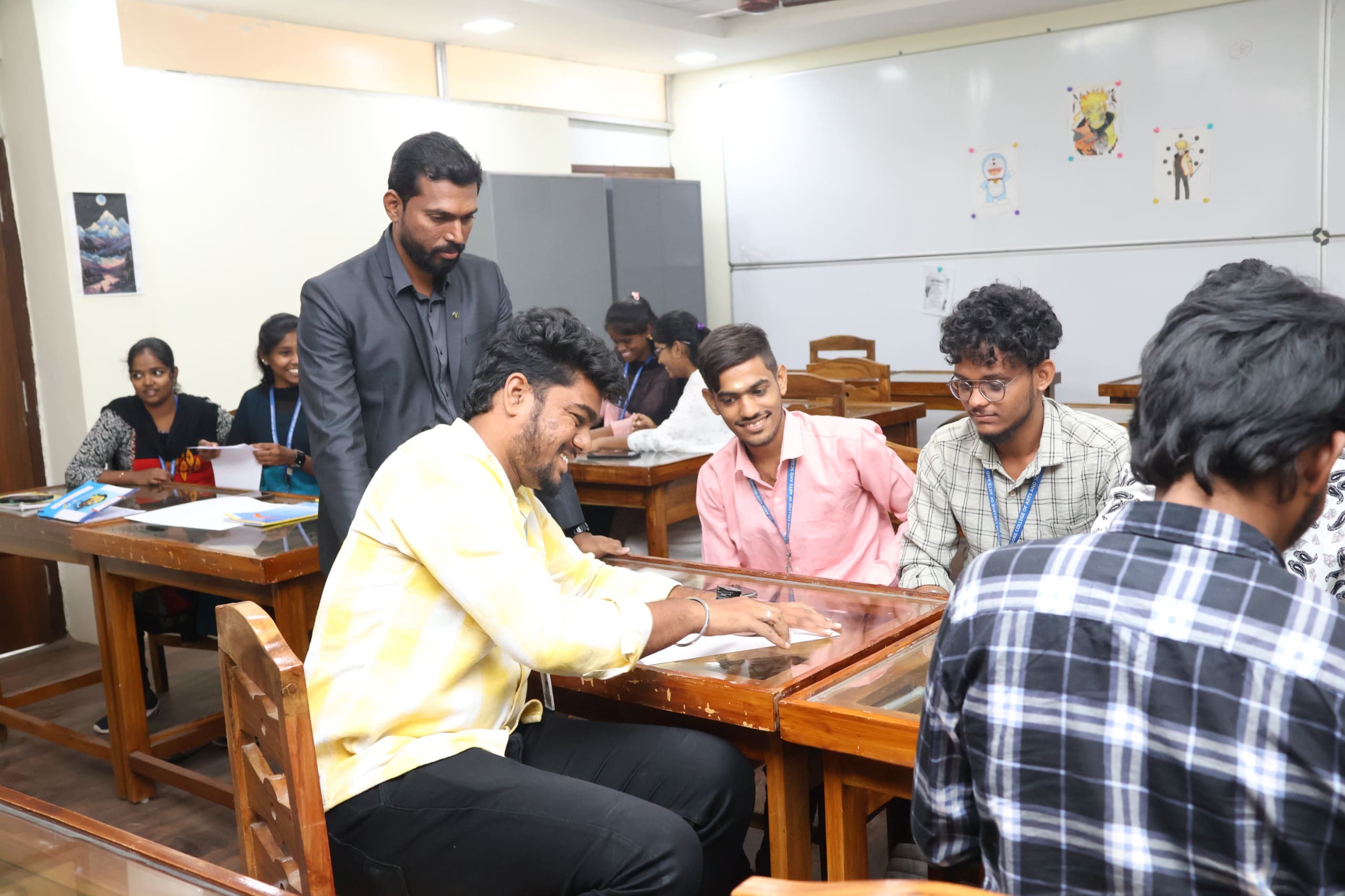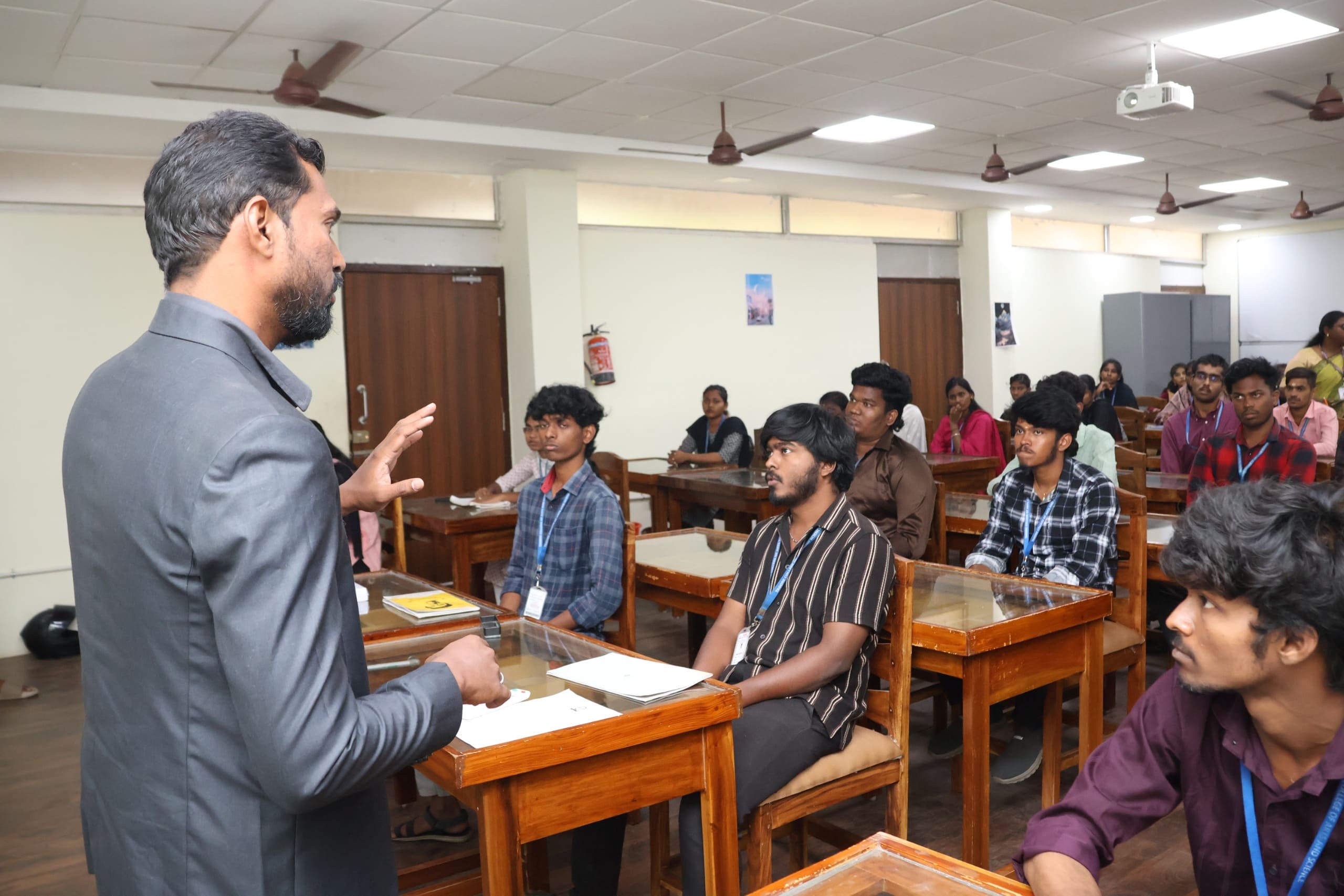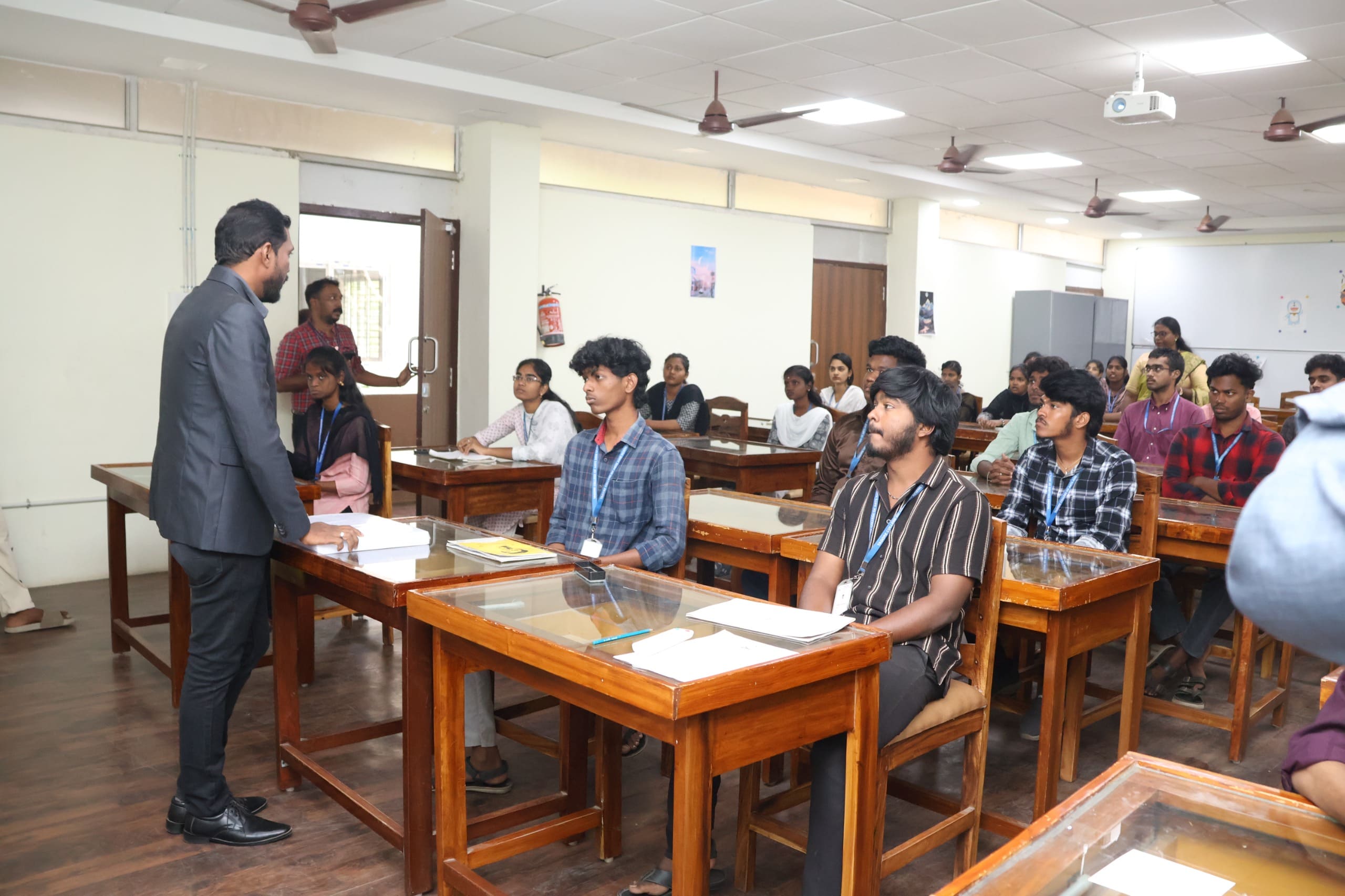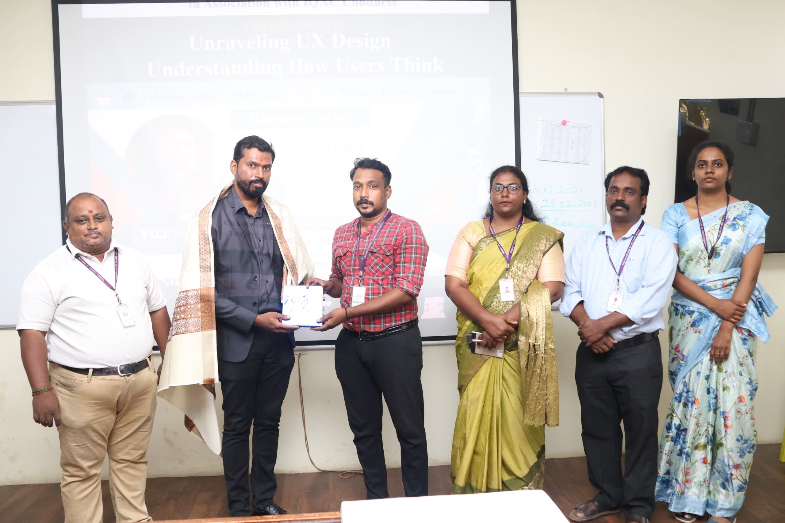 Workshop on UNRAVELLING UX DESIGN – Understanding How Users Think, was conducted for II and III- year B.Sc. Visual Communication students for them to learn about User Experience Design that is industry relevant. The guest speaker Mr Vijayan, Lead UX Consultant in Yuj Designs Pvt Ltd, discussed about UX and gave students hands on interactive session for an applied understanding of UX and its faucets. Students gained in-depth knowledge on UX design, User Psychology, Industry Expectations and Scope in the field.